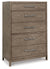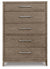 You want your room to reflect your refined sensibilities while remaining forward-thinking in design. The simple silhouette of this chest of drawers opens the door to a bedroom with the curated look and subtle flair you desire. Striking metal bar pulls in a light pewter tone are functionally fashionable against the piece's elegant waxy gray finish. Ample drawer space allows you to store in streamlined style.