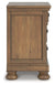 A relaxed take on casual traditional design, this nightstand strikes a comfy pose with a classic sensibility. Its timeless design and chestnut brown wood tone create a welcoming retreat tailored to your laid-back lifestyle. Metal knobs in an aged pewter color subtly dress up framed inset drawers that store nighttime essentials. A hidden pull-out tray behind the bottom drawer keeps your small valuables out of sight.