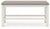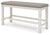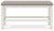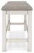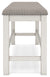 This counter height dining bench is sure to impress come mealtime. With its white finish and light gray upholstery, farmhouse-style seating has never been so fashionable. All that’s missing is you and your family.