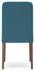 A refreshed take on retro aesthetics. This side chair adds an air of playful simplicity to your dining space, capturing the architectural language of mid-century stylings. The seat invites the eye with a soft-edged silhouette and chic blue cushion. A casual, yet timeless, finish on the frame creates visual contrast to complete this study in form and function.