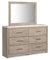 Cool, clean and casually modern. This dresser and mirror's light natural finish and faux Calcutta marble top set the tone for your calming sanctuary. Large linear pulls add dimension and authenticity. Six smooth-gliding drawers neatly accommodate your wardrobe needs.