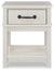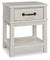 Clean lines and a white stained color add light to your room with this nightstand. The drawer and open shelf allow for versatile storage or display options, making this nightstand a functional favorite.