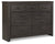 Priced to entice and styled to impress, this 4-piece bedroom set is urban sophistication with a decidedly relaxed air. It’s got the crisp, clean lines of a contemporary piece, but with an earthy element. Deep, horizontal grooves infuse depth and dimension, a replicated oak grain effect gives the charcoal gray finish warmth and character. Mattress and foundation/box spring sold separately.