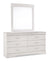 This queen sleigh headboard and dresser/mirror's crisp cottage white gives traditional Louis Philippe profiling a delightful style awakening. The look is timeless. The feel? Right at home. Dresser’s six smooth-gliding drawers with antiqued bail pulls beautifully accommodate.