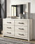 Cambeck King Upholstered Panel Bed with Mirrored Dresser