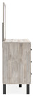 Vessalli King Panel Headboard with Mirrored Dresser