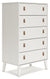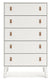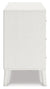 Dare to take minimalism to the max. This bedroom package has an air of sleek simplicity thanks to its white painted finish with subtle replicated wood grain. Two sets of faux leather pulls in light brown and gray allow you to customize the drawers to suit your space.