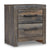 This king-size panel bed, dresser, mirror and two nightstands is a refined take on barn board beauty. Its complex, replicated wood grain showcases hints of burnt orange and teal tones for a sense of weatherworn authenticity. Double drawers at the foot of the bed also come in mighty handy. The dresser and nightstand with smooth-gliding drawers lined with faux linen laminate and industrial dark-tone hardware complete this rustic and industrial style bedroom. Mattress and foundation/box spring available, sold separately.