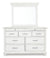 Give your retreat vintage charm with this bedroom set in a beautifully distressed whitewash finish. You'll love the headboard's grand style featuring a picture framed panel. The bench footboard is equally elegant offering extra storage and a convenient seat. Generously scaled moulding, framed drawer fronts and bun feet enhance the character of this bedroom set—evoking the feel of a quaint cottage escape.