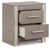 Love sleek and bold contemporary style? Drink in the beauty of this bedroom package. Its eye-catching details include glam glitter accents and the look of leather grain with a subtle gray finish. Combined with the streamlined aesthetic, this set is a simply stunning way to achieve the bedroom of your dreams.