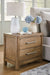 This bedroom package sits comfortably at the intersection of modern lodge and farmhouse aesthetics. Your warm and welcoming disposition is reflected in the charming architectural elements and light brown glazed finish. Even with its poise, the set remains practical, defining your bedroom with reliable function and style.