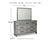 What's old is what's new with this bedroom package. Serving up a fresh look in urban farmhouse style, this set features a light weathered gray finish with dark aged bronze-tone bar pulls and metal straps for a casually cool sensibility. Profiled frames and thick-profiled top moulding are the earmarks of timeless design.