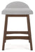 A refreshed take on retro aesthetics. This upholstered bar stool adds an air of playful simplicity to your dining space, capturing the architectural language of mid-century stylings. The seat invites the eye with a soft-edged silhouette and light gray cushion. A casual, yet timeless, finish on the frame creates visual contrast to complete this study in form and function.