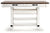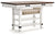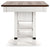 A high-style choice for dining spaces, this counter height dining table serves up the best in rustic farmhouse living. Its two-tone finish pairs a brown tabletop with a distressed vintage white base for a double helping of charm. The table features four storage drawers (two on each side), a seven-bottle wine rack and two open shelves for display. The sturdy post and bracket base design, with black metal accents and a thick dining top, lends an earthy appeal.