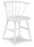 Bring light to your dining area with the clean lines and bright two-tone finish of this dining package. The rectangular dining table, with stylized saber legs in a white finish, matches the spindle-back chairs for beautiful simplicity. The table’s melamine top, in a light tan color, provides additional durability, marrying minimalism with big style for a delightful combination.