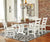 This 7-piece dining set serves up the best in rustic farmhouse living. The extension dining table's two-tone distressed finish pairs a brown tabletop with a vintage white base for a double helping of charm. And the upholstered chair, with timeless ladderback styling and a comfortably cushioned seat, is something to savor.