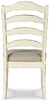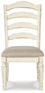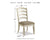 Bon appétit. This dining package has all the right ingredients for a French country-inspired feast for the eyes. Enhance your dining area and serve up a place for casually cool entertaining. Its antiqued two-tone aesthetic pairs a chipped white with distressed wood finished top and for twice the charm. Plushly cushioned seats are covered in textured oatmeal-tone fabric.