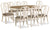 Bon appétit. This dining package has all the right ingredients for a French country-inspired feast for the eyes. Enhance your dining area and serve up a place for casually cool entertaining. Its antiqued two-tone aesthetic pairs a chipped white with distressed wood finished top and for twice the charm. Plushly cushioned seats are covered in textured oatmeal-tone fabric.