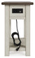 Whether your style is farmhouse fresh, shabby chic or country cottage, you’ll find this chairside end table dressed to impress. Its two-tone finish pairs weathered oak with antique white for that much more quaint character. Charming elements include a plank-and-frame style top, black faceted hardware and a smooth-gliding drawer for remote controls and more. An integrated power supply with dual USB charging ports is ideal for keeping your personal devices at the ready.