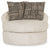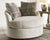 Flaunting a trendsetting silhouette, this swivel accent chair puts the contemporary in your contemporary home. Its 360-degree swivel gives you an around-the-room view to complement your comfort. And the chunky chenille fabric satisfies your need for a piece that feels as good as it looks. Soft jacquard chenille throw pillows add a splash of geometric pattern and color contrast.