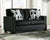 Raise your standard of living with this loveseat in onyx black. Reserved exclusively for those with a penchant for high-glam home decor, this ultra-chic loveseat is dressed to impress with a clean-lined profile, 2-over-2 cushion styling and sleek track arms punctuated with nailhead trim. Easy on the eyes and alluring to the touch, this decidedly contemporary loveseat is covered in a low-pile soft velvet that’s impossible to resist. Abstract-patterned throw pillows enhance the posh appeal.