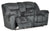 Sometimes seeing is believing. Rest assured this reclining loveseat with console is every bit as indulgent as it looks. Designed to put you in the lap of luxury, this generously scaled reclining sofa—wrapped in a wonderfully plush and practical granite gray upholstery—sports scooped pillow wrapped armrests and curvaceously cushioned head-neck support for feel-good flair.
