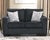 If style is the question, then this loveseat is the answer. Sporting clean lines and sleek track arms, the decidedly contemporary profile is enhanced with plump cushioning and a chenille-feel upholstery that's so pleasing to the touch. Sure to play well with so many color schemes, this loveseat in slate gray includes a pair of understated floral pattern pillows for fashionably fresh appeal.