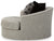 As much as you love clean-lined, modern furniture, you want to keep the vibe relaxed and comfortable. Rest assured, this oversized round swivel chair and ottoman set has that look and feel mastered. Perfect for fashion-forward family rooms, where everyone is welcome to kick back, this designer swivel chair will win everyone over with its head-turning flair. Richly textured, with specks of black and white peeking through, the set’s storm gray upholstery is chic and sophisticated. And how’s this for a welcome surprise: the storage ottoman sports a built-in tabletop with cup holders on the flip side!
