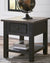 Shabby chic with a hint of down home country. This 2-piece rectangular end table with textured black finish is all the talk of today’s design world. Wood grain shows through the weathered gray-brown top in all of its earthy pleasure. Framed drawer is adorned with lovely traditional hardware.