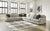 This upholstery package is a beautiful case of oversized space—fully utilized. Its generous scale ensures that everyone has a place to kick back and relax in style. The set’s cool color is only part of the story, with a bevy of black and white accent pillows ensuring a happy landing for everyone.