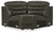 For those seeking to curate a living room retreat that offers superior comfort and a contemporary aesthetic, this sleekly designed power reclining package will become your favorite source of at-home serenity. Rest on real leather in spacious seating areas while using one-touch power controls to recline and adjust the headrests with ease. As you recharge after a long day, your devices can too with USB charging. This set is visually enticing in a luxe dark gray, with slope track arms and stitched detailing on the back to enhance its modern appeal.