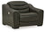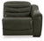 For those seeking to curate a living room retreat that offers superior comfort and a contemporary aesthetic, this sleekly designed power reclining package will become your favorite source of at-home serenity. Rest on real leather in spacious seating areas while using one-touch power controls to recline and adjust the headrests with ease. As you recharge after a long day, your devices can too with USB charging. This set is visually enticing in a luxe dark gray, with slope track arms and stitched detailing on the back to enhance its modern appeal.