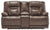Big and bold, this two-piece power package includes a power reclining sofa and power reclining loveseat with console. Both feature Easy View™ power adjustable headrests for maximum comfort at the touch of a button; easily recline and position the headrest and lumbar support to your liking. Convenient USB ports let you charge cell phones or laptops without getting up. The look and feel of genuine leather surrounds you in the cushioned seat, interior bustled back cushioning and pillow top armrest, while faux leather back and sides maintain affordability. Ideal for a modern or casual setting, the umber-colored upholstery has an effect that creates a rustic look.