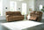 Expansive elegance. This reclining seating package makes a sizable style statement. Each piece's large scale enhances the luxe appearance, magnifying the beauty of richly warm brown faux leather. Polishing off the set is an effortless reclining motion, which adds a layer of function to this masterclass in form.