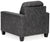 This ultra-contemporary sofa chaise, chair and ottoman set invites you to kick out and make yourself comfortable. Linear track arms offer a clean, sleek aesthetic, while tufted box cushions are a nod to mid-century design. Gunmetal gray faux leather offers the cool, weathered look you love and touchably soft feel you crave. Simply flip the cushion and slide the ottoman to reverse the chaise for customized comfort.