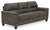 If you love the cool look of leather but long for the warm feel of fabric, you can take comfort in this 3-piece set with sofa, loveseat and recliner. Wrapped in a fabulous faux leather with a weathered hue and hint of pebbly texture to resemble the real deal, this decidedly modern living room set proves less is more. Elements include angled side profiling and track armrests wrapped with a layer of pillowy softness for that little something extra. Prominent jumbo stitching and clean-lined divided back styling lend fashion-forward flair.