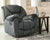 Sometimes seeing is believing. Rest assured this rocker recliner is every bit as indulgent as it looks. Designed to put you in the lap of luxury, this generously scaled recliner—wrapped in a wonderfully plush and practical granite gray upholstery—sports scooped pillow wrapped armrests and curvaceously cushioned head-neck support for feel-good flair.
