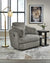 Like a warm hug, this recliner envelops you in comfort with its barrel shape and soft cord upholstery. It reclines, glides, and swivels to cater to your every need. This chair also features posh bolster pillows and cleverly designed storage. Unwind and cuddle up in your new cozy place.