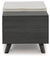 The clean profile of this small storage bench makes an entrance anywhere and everywhere you place it. A replicated blackened wood finish and tapered wood legs lend a fresh flair. Adding form and function, both tops are removable to expose hidden storage underneath. It’s a must-have piece for small spaces.