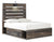 This full-size panel bed with storage, dresser, mirror, chest of drawers and two nightstands is a refined take on barn board beauty. Its complex, replicated wood grain showcases hints of burnt orange and teal tones for a sense of weatherworn authenticity. Those who love to read in bed are sure to find the retro-chic light sconce and USB plug-ins on the open-slat style headboard such a bright idea. Underneath the bed: smooth-gliding drawers and open cubbies that accommodate casually cool storage bins. The dresser, chest and nightstand with smooth-gliding drawers lined with faux linen laminate and industrial dark-tone hardware complete this rustic and industrial style bedroom. Mattress and foundation/box spring available, sold separately.