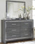 Reminiscent of Hollywood glamour of yesteryear, this bedroom set with full panel headboard, dresser/mirror, chest and nightstand interprets luxury in a decidedly modern way. Headboard details include button-tufted upholstery, faceted faux crystals and LED lights enhanced with remote-controlled settings for color and brightness. Chrome-tone drawer pulls and accents are a chic complement to the dazzling gray finish.