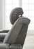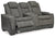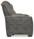This sleek, ultra-modern power reclining loveseat with console has it all. With designer style and head-to-toe comfort, it has the upscale look of leather at a scaled-down faux leather price. Its gray two-tone upholstery is more durable and water-repellent than regular leather, an added bonus for families. Features including wireless and USB charging, an adjustable headrest and an extended ottoman make this the next generation of power recliners.