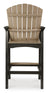 Raise the bar on outdoor living with this round bar table and bar stool set. Crafted for style, comfort and durability, the set impresses with a standout two-tone finish that pairs a light driftwood-look and black finish for twice the interest. Round table design keeps everyone in the flow of conversation, while the stools cater with sturdy armrests, an ample footrest, high shell back and waterfall wrapped seat for curvaceous comfort.
