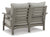 It’s the dawn of a new day for gray. Embrace the style trend with this loveseat and coffee table package. Crafted of HDPE material that combines the exceptional durability and weather resistance you need with the "wood look" you love, this timeless set takes alfresco living to a whole new level. The slatted styling on the table naturally sheds rainwater. Thick seat and back cushions on the loveseat are wrapped in our exclusive Nuvella® high-performance fabric that’s fade resistant, stain resistant and a breeze to clean.
