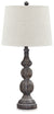 Light up your room in timeworn sophistication with this handsomely crafted table lamp. A black finish with two-tone gradations moves your eye from top to bottom. The silhouette of the lamp’s turned base contrasts beautifully against the neutral drum shade.