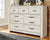 Gorgeous and modern, this charming bed and dresser express your farmhouse style. Wispy white finish over replicated oak wood grain infuses so much character for a weathered, rustic look you’ll love. Clean-lined, classic panel styling provides a country-chic bedroom retreat that’s a breath of fresh air and provides the perfect foundation for an inviting space.