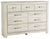 Gorgeous and modern, this charming bed and dresser express your farmhouse style. Wispy white finish over replicated oak wood grain infuses so much character for a weathered, rustic look you’ll love. Clean-lined, classic panel styling provides a country-chic bedroom retreat that’s a breath of fresh air and provides the perfect foundation for an inviting space.