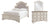 Elevating the art of traditional cottage styling, this bedroom set is your dream retreat realized. A sumptuous beauty, the upholstered bed wows with a distressed chipped white finish for heirloom appeal. Deep tufting on the cushioned upholstered headboard adds such a cozy element sure to put you at ease. Framed drawer fronts, decorative corbels, bail pulls and contrasting wood finished surfaces only add to the charm.